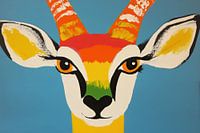Details: antilope, modern, dieren schilderij, kleurrijk, blauw, oranje, geel, wit, abstract, kunst