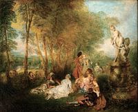 Jean Antoine Watteau (Valencijn, 10 oktober 1684 – Nogent-sur-Marne, 18 juli 1721) was een Franse kunstschilder uit de rococoperiode. Het werk van Watteau markeerde het begin van een nieuwe stijl in Frankrijk, de Rococo, die diepgaand verschilde van de zware barokke stijl die onder Lodewijk XIV tot ontwikkeling was gekomen: lichtzinnig in plaats van pompeus, asymmetrisch in plaats van symmetrisch, vrouwelijk in plaats van mannelijk, gericht op Parijs in plaats van Versailles. Watteau houdt van het allervroegste begin schetsboeken bij met snelle aanduidingen van figuren naar het leven.