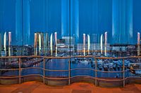 Avondopname vanuit het MAS ( museum aan de stroom) met zicht op de jachthaven. Het Eilandje is in volle ontwikkeling.