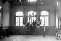 Dat waren nog eens tijden! Toen turnen voor jongens heel gewoon was. Over de outfit maakte men zich nog niet zo druk: korte of lange broek, en gewoon in je hemdje. Kijk ze daar stoer hangen. Het is al een prestatie op zich, en dan moet je dat ook nog even volhouden voor de fotograaf. Zou de meester in deze kleding hebben voorgedaan hoe…