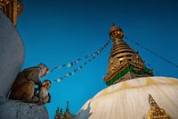 Koop de foto Apen bij de Swayambhunath stoepa in Kathmandu - Nepal van Chi als print op canvas, aluminium dibond, (ingelijste) fotoprint, behang en ArtFrame. Voor jou op maat geprint in Fine-Art kwaliteit.