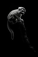 Een ondeugende aap nestelt zich tegen een tak, zijn silhouet betoverend in contrasterend zwart en wit. De mysterieuze uitstraling en speelse houding geven elke kamer een levendig tintje en wekken tegelijkertijd nieuwsgierigheid op. Ideaal voor in de woonkamer om gesprekken te stimuleren en een ontspannen sfeer te creëren.