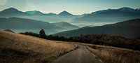 Een weg die uitzicht heeft op de bergen behorende bij de Apennijnen.