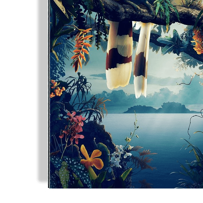 Onder een sluier van orchideeën en gefilterd licht ontmoeten twee neushoornvogels elkaar in stilte — niet als vogels, maar als echo’s van een verbondenheid. Eén vertrokken, één gebleven, gedragen in de adem van de…