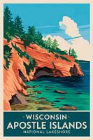 Een harmonieuze mengeling van zacht blauw en groen, die het rustgevende water en de majestueuze kliffen van de Aposteleilanden weerspiegelt. De gestileerde bomen geven het landschap een levendig tintje. Dit kunstwerk is ideaal voor kantoor of woonkamer, creëert een ontspannen sfeer en nodigt uit tot een droomreis in de natuur.
