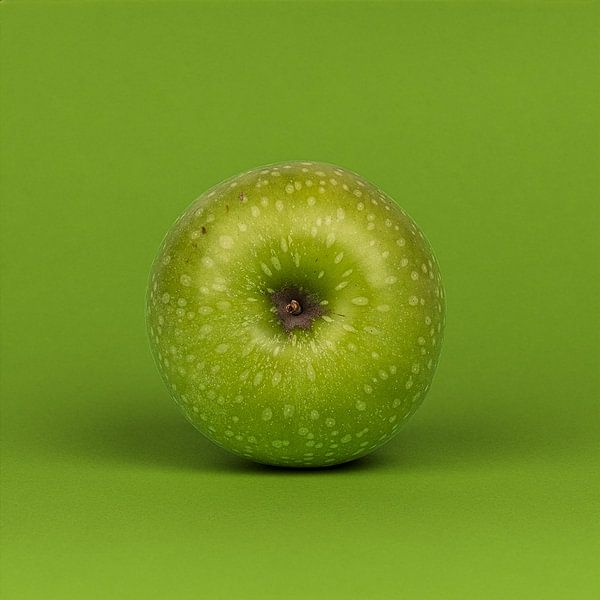 Een verse, sappige, stevige groene appel. Wachtend in het groen.