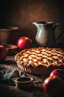 Koop de foto Appeltaart in een rustiek stilleven van Poster Art Shop als print op canvas, aluminium dibond, (ingelijste) fotoprint, behang en ArtFrame. Voor jou op maat geprint in Fine-Art kwaliteit.