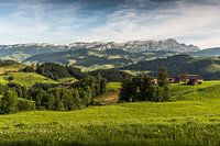 Het schilderachtige Appenzellerland met uitzicht op het Alpsteinmassief en de Säntis in het kanton Appenzell Innerrhoden, Zwitserland.