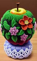 Koop dit bloemen kunstwerk Apple with Macramé coat van Knoetske als print op canvas, aluminium dibond, (ingelijste) fotoprint, behang en ArtFrame. Voor jou op maat geprint in Fine-Art kwaliteit.