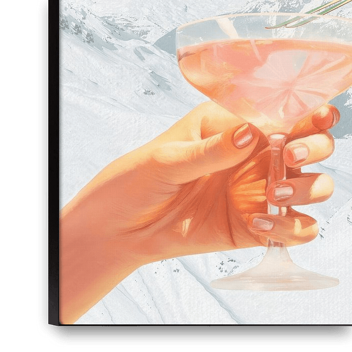 Après Ski Cocktail Collage - Wintereditie - Deel van een tweeluik. Haal de mooiste plaatjes van de skipiste in huis met dit collage kunstwerk van een skiër die een duik neemt in een cocktailglas. Krijg meteen een winters gevoel!
