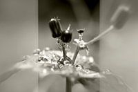 Macrophotographie de laiteron après la pluie. traitement chromatique et effet de dépoli.