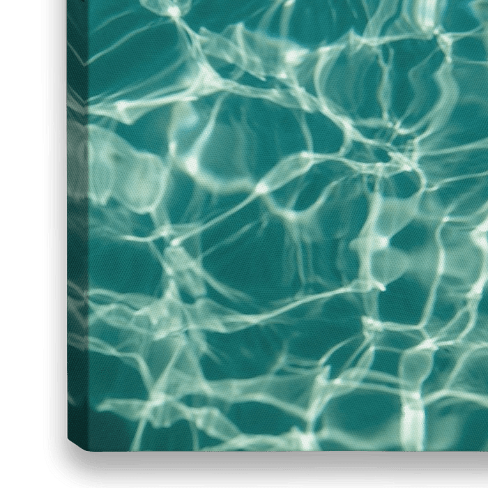 Een betoverende close-up van de speelse dans van licht en water. Deze foto, genomen in het zwembad van Camping Bella Torino nabij Turijn, Italië, vangt de serene en dynamische textuur van het wateroppervlak.