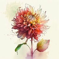 Deze aquarel afbeelding van een dahlia bloem is los en speels geschilderd. De kleuren van de bloem zijn helder en levendig, waardoor een warme en uitnodigende uitstraling ontstaat. De kunstenaar heeft een reeks kleuren en texturen gebruikt om de natuurlijke schoonheid van de dahlia bloem te benadrukken. Dit is een perfect kunstwerk voor wie van de natuur houdt en de herfst omarmt.