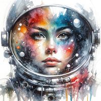 Aquarel Vrouw Astronaut