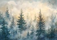 Aquarel dennenbos