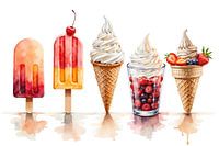 Verfrissende aquarel illustratie met ijshoorntjes en ijslolly's smeltend op een zonnige dag