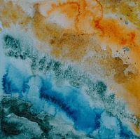 Abstract aquarel of waterverf schilderij. Verschillende kleuren zijn in elkaar overgevloeid en met wat fantasie zie je er een kustlijn in.