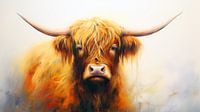 Aquarel portret van een Schotse Hooglander kan worden afgedrukt op diverse materialen.