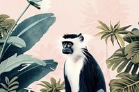 Ontdek dit prachtige aquarel schilderij van een aap in een weelderige jungle setting. Met zijn gedetailleerde penseelstreken en levendige kleuren brengt het ontwerp de schoonheid van de natuur en dieren tot leven. De zachte tinten van groen en roze contrasteren prachtig met de zwart-witte vacht van de aap, waardoor het schilderij een serene en toch dynamische uitstraling krijgt. Perfect voor in de slaapkamer of kantoor, dit kunstwerk voegt een vleugje natuur en elegantie toe aan elke ruimte. Ideaal voor liefhebbers van dieren en moderne kunst, het is een tijdloos stuk dat elke muur zal verfraaien.