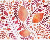 Herfstkleuren aquarel gebladerte met bladeren, takken en stippen.