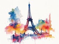 Parijs de stad van de liefde in een mooie sfeervolle aquarel.