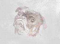 Deze mopshond is geschilderd in aquarel met oost indische inkt op aquarelpapier. Vervolgens is het handgemaakte schilderij gedigitaliseerd en zijn er diverse lagen van oude meesters overheen geplaatst. Het geheel is zacht van kleur en heeft een lichte structuur en grijzige achtergrond, waardoor dit ontwerp prachtig zal staan als behang…