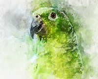 Aquarel van  groene papegaai van Elles Rijsdijk