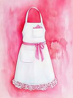 Aquarel van wit keukenschort tegen roze van Franka Poulain