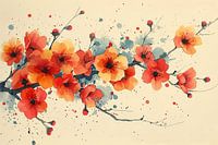 Breng de natuur in huis met deze prachtige aquarel van rode en oranje bloemen. Perfect voor in de slaapkamer of hobbykamer.