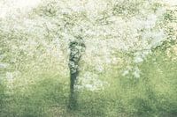 Meervoudige belichting van een boom met witte bloesem. Er werden zeven foto's samengevoegd in de camera, wat voor een schilderachtig effect zorgt.