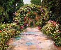 De titel 'Arc de Triomphe' lijkt de triomf van de natuur in deze foto te symboliseren. Te midden van de zomerse idylle heeft de natuur haar overwinning behaald op de grijze en sombere winter. De bomen, struiken en rozenstruiken bloeien in een prachtig maar volledig natuurlijk palet van zomerkleuren.