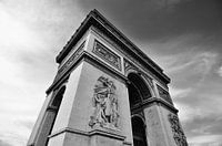 Zwart-wit opnamen van de zeer bekende Arc de Triomphe op Place Charles de Gaulle (voorheen Place de l’Étoile) in Parijs. De triomfboog, gebouwd tussen 1806 en 1836) is de op een na grootste van de wereld en is gemaakt in opdracht van Napoleon Bonaparte.