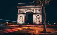 Lichtsporen op de rotonde bij de Arc de Triumph in Parijs.