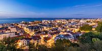Uitzicht vanaf het Observatoire Ste-Cécile over de stad Arcachon en de baai van Arcachon bij nacht, Aquitaine, Nieuw-Aquitaine, Frankrijk.