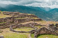 Deze foto toont de overblijfselen van een archeologische site in de Peruaanse Andes. De ronde stenen muren steken indrukwekkend af tegen het omringende landschap, terwijl op de achtergrond majestueuze bergen de hemel in torenen. Deze foto straalt tegelijkertijd geschiedenis, natuur en mystiek uit. Het doet denken aan vroegere culturen die hier in harmonie met de natuur leefden en nodigt de kijker uit om zich onder te dompelen in de diepten van de Andeswereld. De foto straalt avontuur, archeologische fascinatie en de magie van de bergen uit. Als muurschildering is het ideaal voor ontdekkingsreizigers, geschiedenisfanaten en natuurliefhebbers. De aardetinten van de stenen in combinatie met het groen van het landschap en de dramatische lucht creëren een indrukwekkend visueel effect. Perfect voor woonkamers, studeerkamers of galerieën, waar het zijn culturele en historische kracht kan ontvouwen. Dit schilderij combineert de archaïsche energie van het verleden met de schoonheid van de Peruaanse natuur.