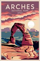 In zachte pastelkleuren schittert een majestueuze boog voor een ontroerend mooie zonsondergang die de kijker meeneemt naar de uitgestrektheid van het Arches National Park. Dit fascinerende tafereel brengt een gevoel van vrijheid en avontuur in de woonkamer en creëert tegelijkertijd een ontspannen sfeer die uitnodigt om te dromen.