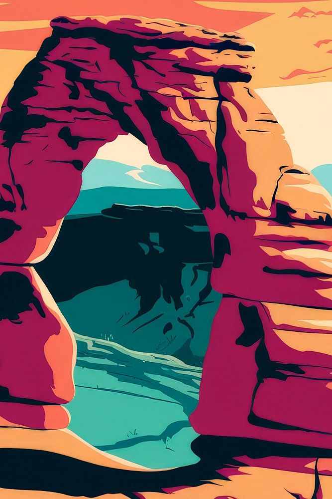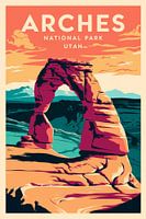 De iconische boog rijst majestueus op voor een adembenemende zonsondergang in levendige rode tinten en zachte aardse kleuren. De harmonieuze combinatie van natuur en kleur straalt rust en avontuur uit. Dit kunstwerk is perfect voor in de woonkamer, brengt de schoonheid van Arches National Park bij je thuis en nodigt je uit om te dromen.
