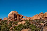 Het prachtige landschap met natuurlijke bogen, gevormd door wind, water en erosie, in het rode gesteente van Arches National Park bij het plaatsje Moab in de Noord Amerikaanse staat Utah.