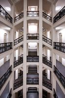 Koop de foto Architecturale elegantie - perspectieven in het trappenhuis van Karsten Rahn op canvas, aluminium dibond, (ingelijste) fotoprint, behang en ArtFrame, op maat geprint in Fine-Art kwaliteit.