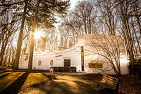 Het witte gebouw in een avondzonnetje zorgt voor mooie schaduwen
