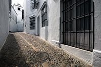 Een steegje in het witte dorp Arcos de la Frontera in Andalusië, Spanje.