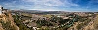Panoramisch uitzicht vanuit Arcos de la Frontera over de vallei van de rivier Guadalete in Andalusië, Spanje.