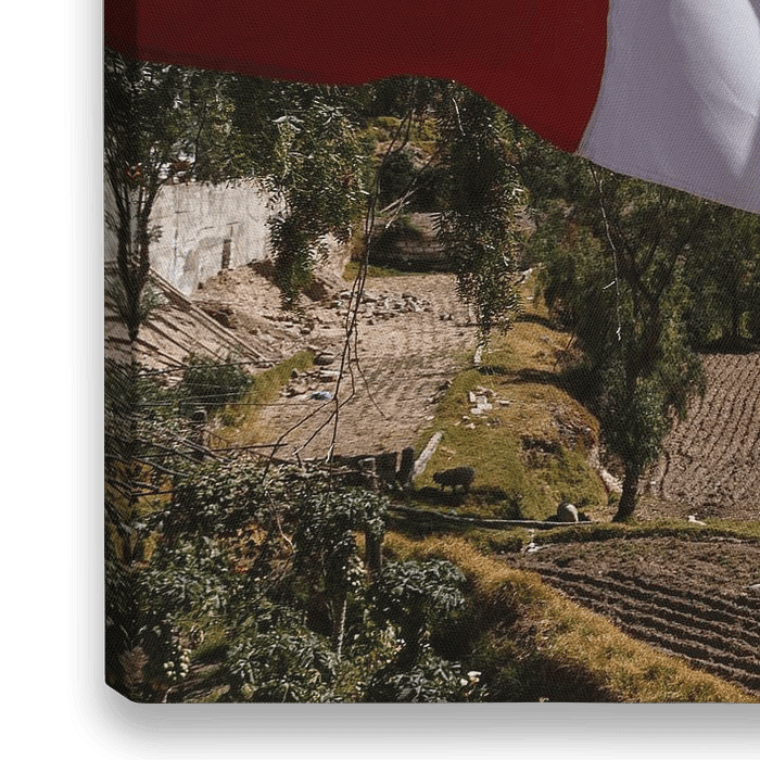 Uitzicht vanuit Arequipa, Peru op de Pichu Pichu vulkaan met de Peruaanse vlag op de voorgrond. Zuid Amerika