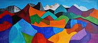 Argentinië Kunst | Colorful Whispers - Dit abstracte landschapsschilderij belichaamt de geest van Argentinië door middel van levendige, gebogen kleurblokken die de unieke en diverse landschappen weerspiegelen.