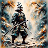 Een eenzame samoerai staat opgesteld in het hart van een mystiek bos, zijn aanwezigheid is zowel geaard als etherisch. Gehuld in een traditioneel harnas weerspiegelt elke gelakte plaat en geweven koord eeuwen van discipline, eer en ritueel. Het harnas draagt subtiele tekenen van slijtage, wat eerder duidt op een krijger gevormd door de…