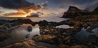 Mykines island and Arnafjall mountain in sunset, Faroe Islands