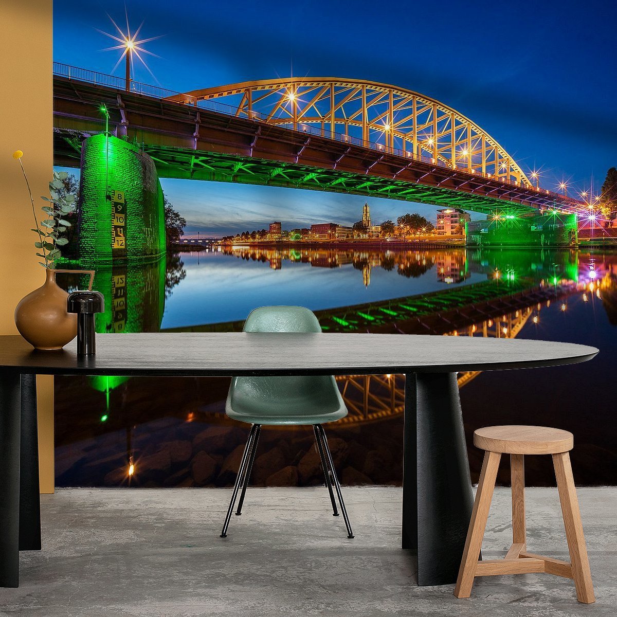 Als liefhebber van de kleur blauw is er niets mooiers als de Arnhemse John Frostbrug verlicht in het blauw.