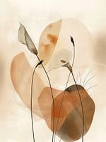 Het canvas wordt gedomineerd door zachte, vloeiende vormen die lijken te evolueren en te transformeren als levende organismen. Deze organische vlakken dansen subtiel rond elkaar, waardoor een harmonieus geheel ontstaat dat zowel rustgevend als intrigerend is om te aanschouwen.