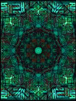 Dit is een nogal ongewoon formaat voor een mandala. Het is ontstaan uit de weerkaatsing van een detail van een foto met drukletters.