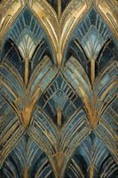 Dit werk straalt de tijdloze elegantie van de Art Deco-stijl uit, met een complex patroon van gestileerde vormen en geometrische lijnen. De combinatie van rijke blauw- en gouden tinten geeft het werk een luxueuze uitstraling, terwijl de symmetrische opstelling een gevoel van orde en harmonie brengt. Het gedetailleerde lijnwerk en de fijne texturen voegen diepte en verfijning toe, waardoor het werk zowel klassiek als eigentijds aanvoelt. Ideaal voor liefhebbers van vintage stijl en verfijnde esthetiek, zal dit kunstwerk een vleugje glamour en verfijning toevoegen aan elk interieur.